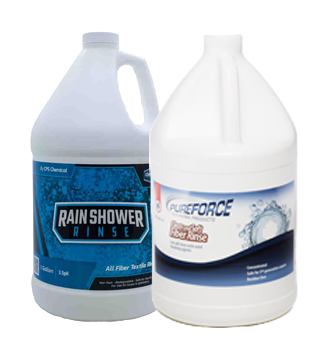 It is best to use a self-neutralizing detergent rinse or an acid rinse, such as CPS Rain Shower Rinse, 3.5 pH All Fiber Textile or PureForce Clean & Soft Fiber Acid Rinse.