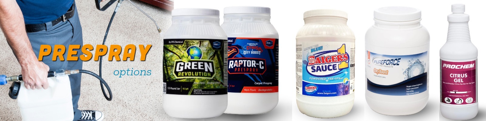 Use CPS Green Revolution Universal Powder Prespray for general jobs, or CPS Raptor-C 12.5 pH Powdered Prespray when heavier cleaning is needed. Add PureForce OxyBoost or PureForce CitrusBoost when more punch is needed with a less aggressive prespray.